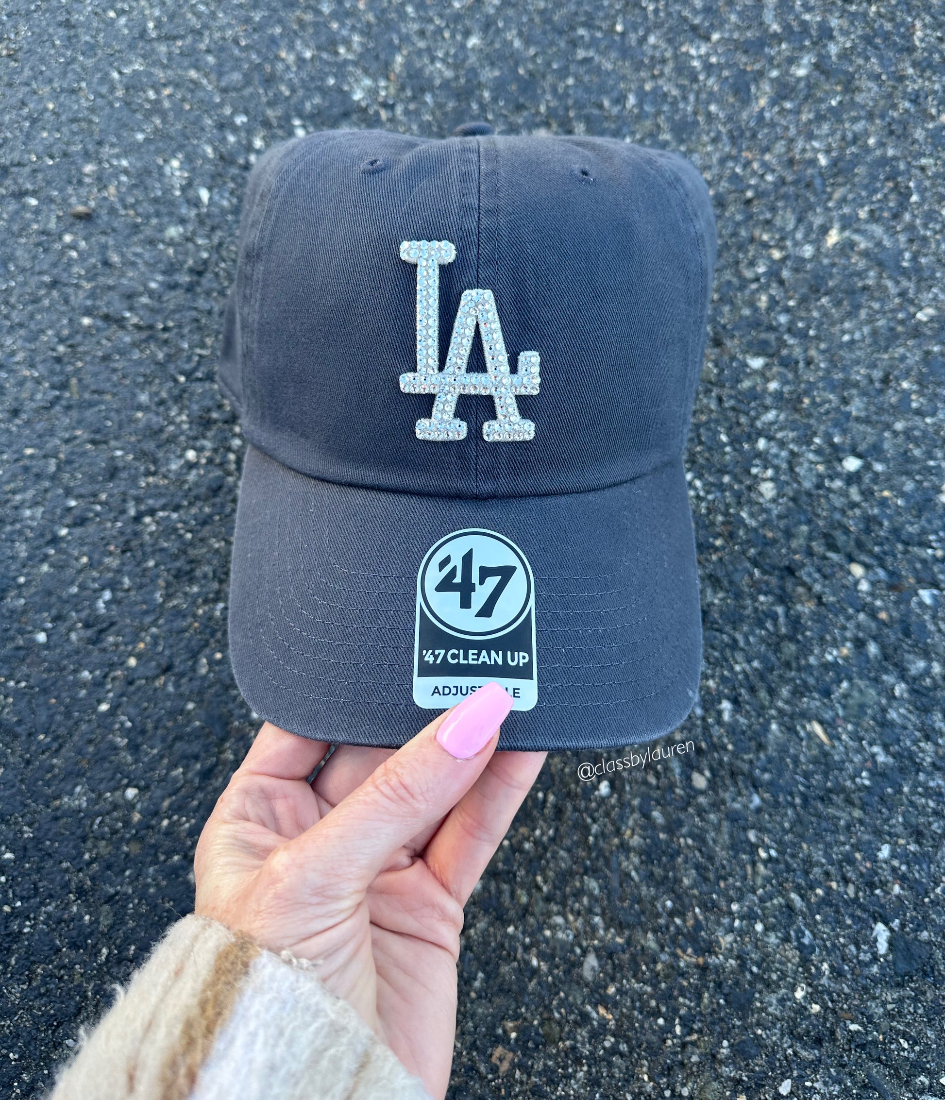 The Dodgers adjustable hat has been customized with gorgeous crystals. Each crystal is carefully hand placed with a variety of different sizes to give it the ultimate shine! Crystals are set in place with permanent adhesive.
